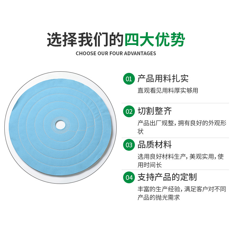 耐磨拋光輪 白布輪拋光輪采用高強全樹脂砂布為原材料,使用高強粘度樹脂膠,產(chǎn)品質(zhì)量穩(wěn)定,外觀美觀。適用行業(yè)非常廣泛,可用于各類金屬、非金屬產(chǎn)品表面研磨、拋光。