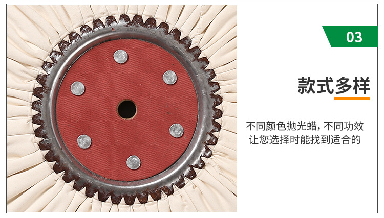 黃蠟:其內含豐富有的油脂,因選材講究,更具有超卓的光澤度及切削力,具有相當不錯拋光效果,拋后紋路光滑細膩。不會燒傷工件,一般配合粗布輪粗拋使用,價格比較實惠。