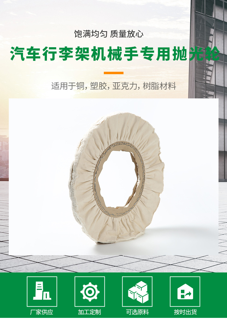 您當前的位置:首頁 / 產品中心 / 拋光輪系列 / 廠家供應汽車行李架機械手專用拋光輪 純棉白布拋光輪拋光片