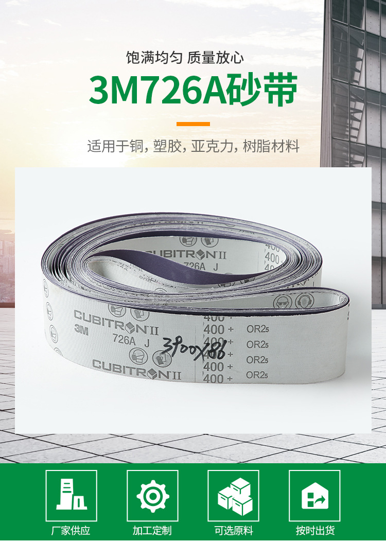 廠家供應(yīng)3M726A砂帶 紗窗修補(bǔ)貼軟砂布砂紙帶打磨木工由溫州華銘拋光研磨材料有限提供,本公司提供的拋光臘用料厚實(shí)夠用,選用良好材料生產(chǎn),外觀美觀實(shí)用,使用時(shí)間長(zhǎng),可滿足客戶對(duì)不同產(chǎn)品的拋光需求,豐富的生產(chǎn)經(jīng)驗(yàn),滿足客戶對(duì)不同 產(chǎn)品的拋光需求。咨詢電話:13075703790